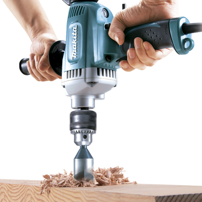The Makita 16 mm (5/8") 750 W Reversing D-Handle Drill with Keyed Chuck delivers up to 750W for improved mixing and drilling performance. With All-ball bearing construction for durability and longer tool life on-board chuck key storage for fast and convenient bit changes and rocker switch for quick transition between forward and reverse outdoor & power equipmentration is a excellent option for heavy duty work .