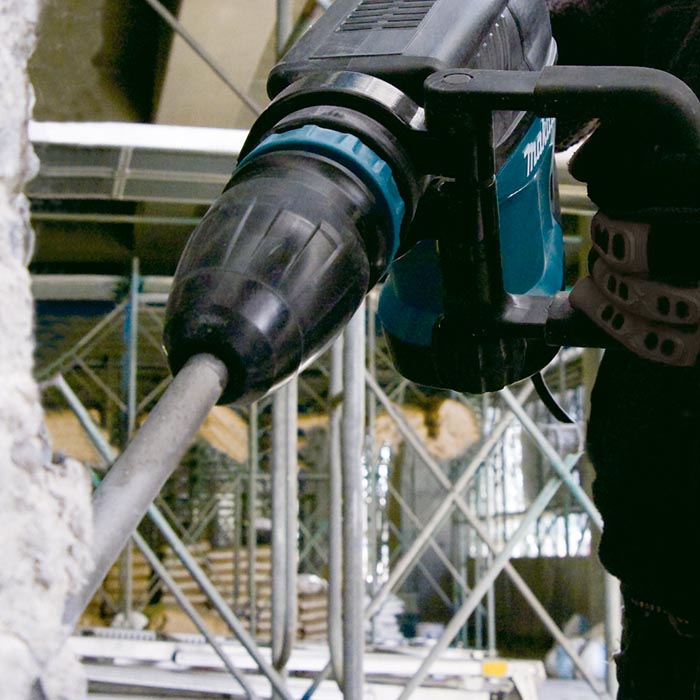 The Makita 19.1 J Demolition Hammer, SDS-MAX. Enhanced chipping sensation to soft materials. Powerful 1,510 W motor delivers 19.1 J (EPTA-Procedure 05/2009) of impact energy to handle the most demanding applications.Equipped one touch sliding chuck for easy bit installation and removal and variable speed control dial enables user to match the speed to the application for greater versatility.onstant speed control automatically applies additional power to the motor to maintain speed under load to complete the most challenging jobs. 12 Bit angle settings allow the bit to be set at different positions for outdoor & power equipmentrating convenience.