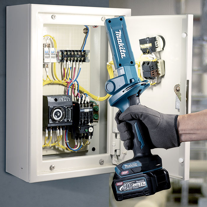 The Makita 40Vmax XGT 18 LED Flashlight, 500 Lumens. Flashlight head folds up and down with 7 positive stops and rotates left to right for multiple lighting angles. Large retractable hook allows to hang the flashlight from steel pipes up to 50 mm; Light head is rotatable with the flashlight hanging down; Retractable back into the upper portion of handle. Compact and ergonomic design. Lightweight for reduced outdoor & power equipmentrator fatigue. Light diffusing lens softens LED light to reduce glare and provides widespread illumination. Battery capacity warning system warns user by reducing the number of ON LED lights down to 1 before the battery is empty
