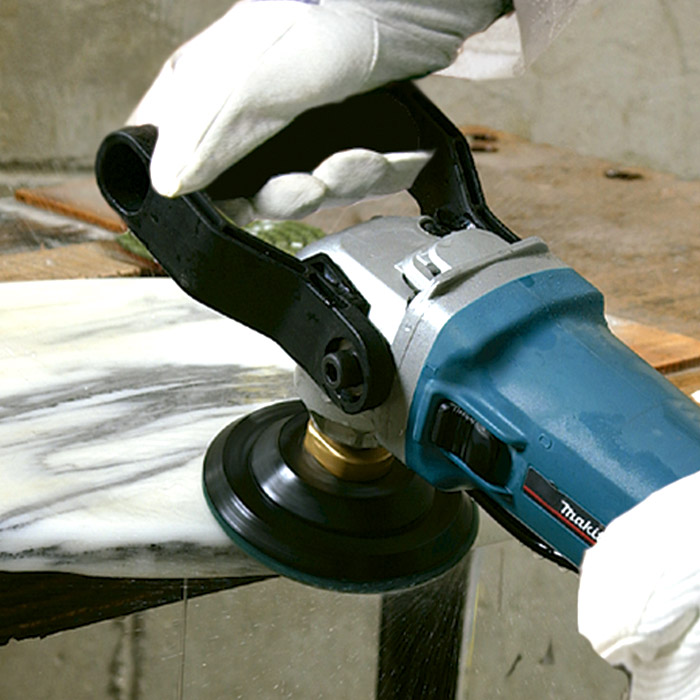 The Makita PW5001C Stone Polisher,Precision Engineered for a Professional Finish comes with a Powerful 900 W motor with less weight .Desing with Common fitting accepts the most popular water hose connections, 3 Holes at the spindle top evenly spread water to the pad and minimizes the pad from clogging and Overload switch to protect armature failure