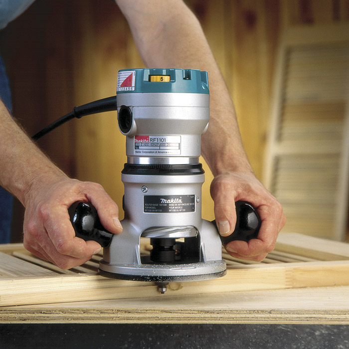 The Makita 2-1/4 HP routers (RF1101) combines power with convenience and ease-of-use features for improved performance. The RF1101 has a powerful 11 AMP motor with soft start for smoother start-ups, and electronic speed control that maintains constant speed under load. The variable speed control dial allows the user to match the speed to the application, with 8,000 - 24,000 RPM. The sub-base accepts industry standard template guides, and the durable flat top provides increased stability when changing bits. The RF1101 is engineered with all-ball bearing construction for longer tool life and accepts 1/2" and 1/4" shank bits.